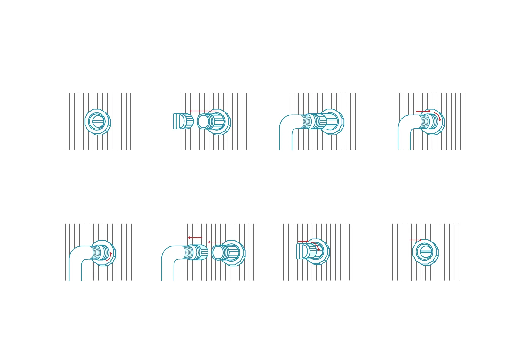 (turn hose and fitting 1/4 turn
