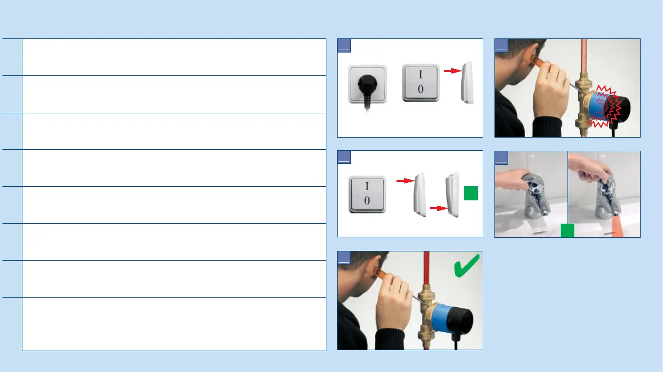 Öppna och stäng ett tappställe för varmvatten flera gånger (se bilden 4).