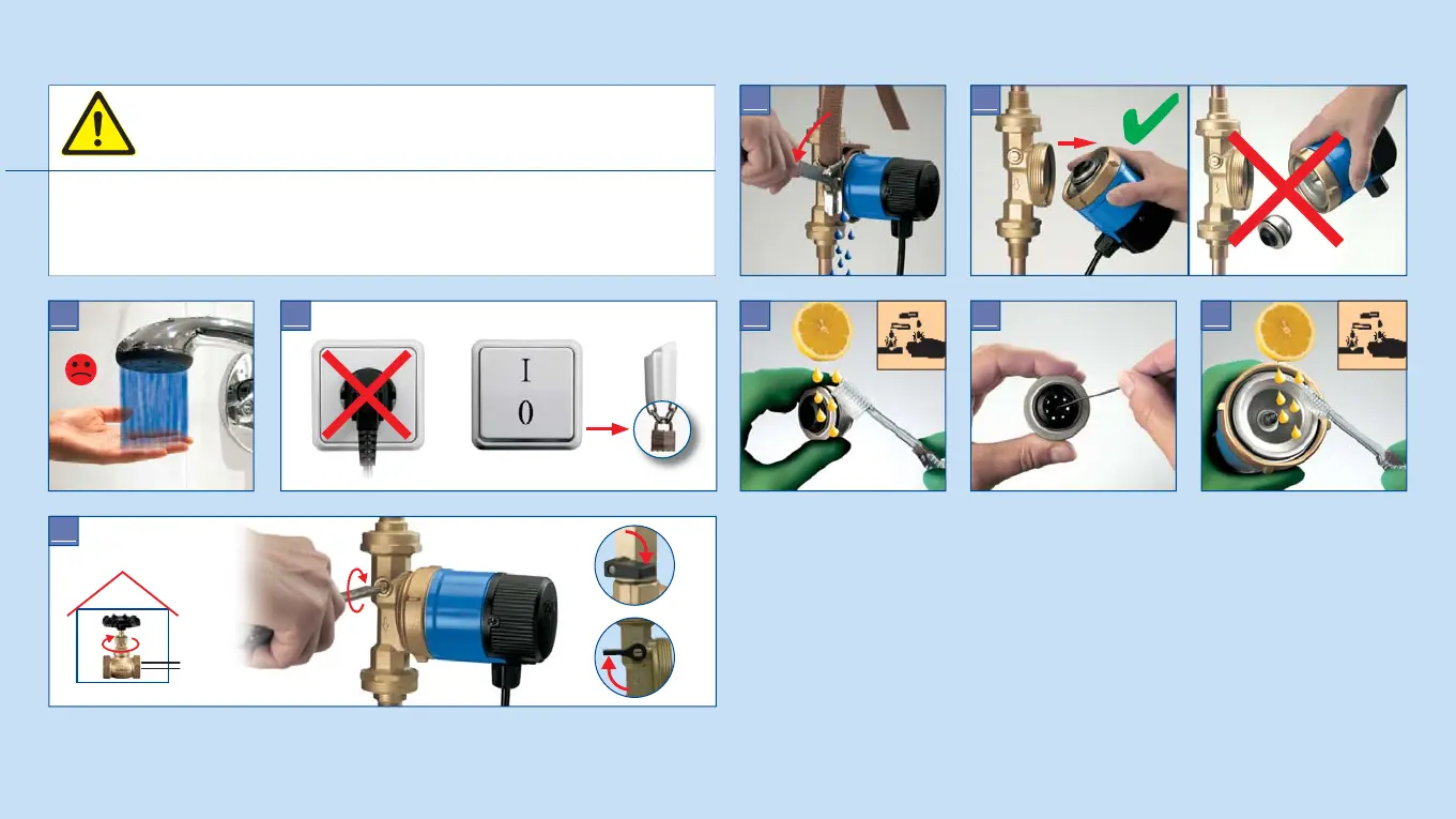 Pompa üzerinde çalışma yapmadan önce elektrik devresinin enerjisini kapatın ve