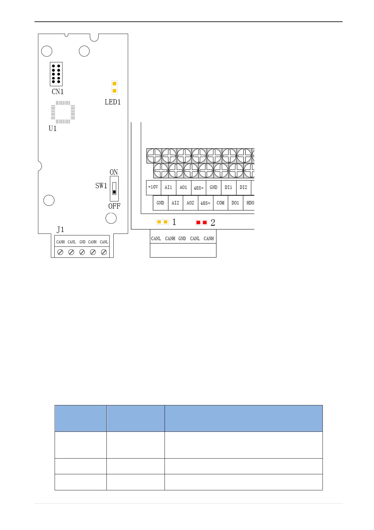 Figure 7-11 CANopen communication card and installation DiagramTable 7-12 CANopen