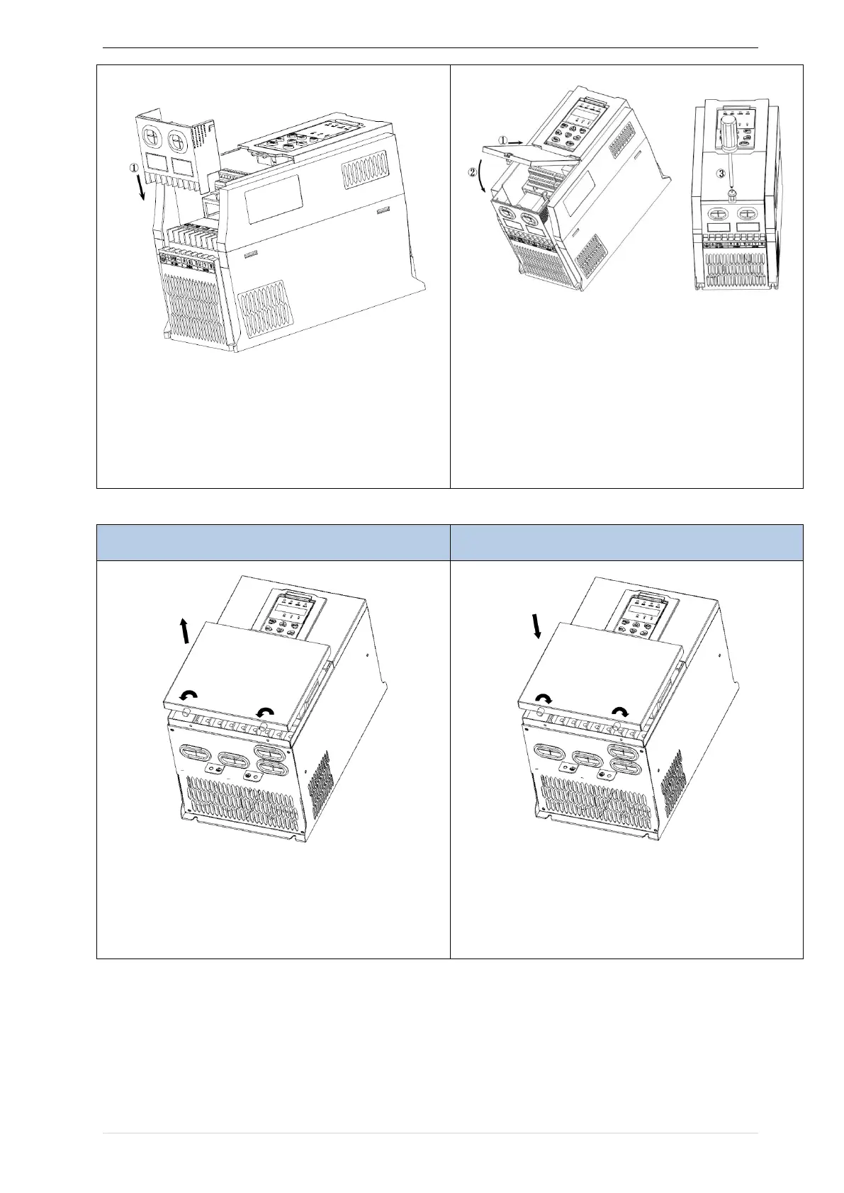 ◆ SIZE D-G(18.5KW-90KW) Removal and installation of cover: