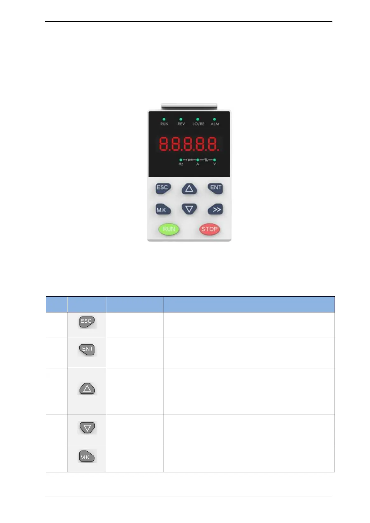 the parameters, status monitoring and operation control, LED keyboard shape as shown in Figure 4-1: