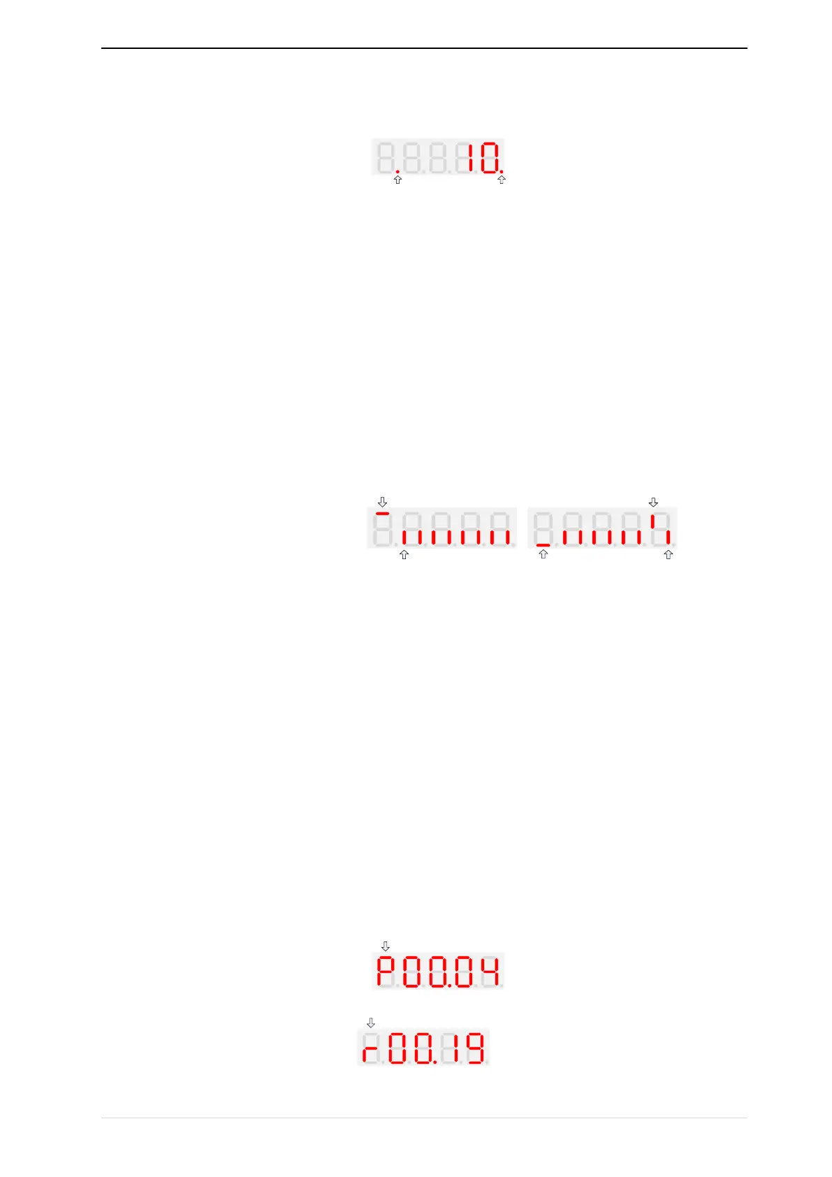 Editable parameters The leftmost LED displays "P"; the leftmost LED of the read-only parameter displays "r", as