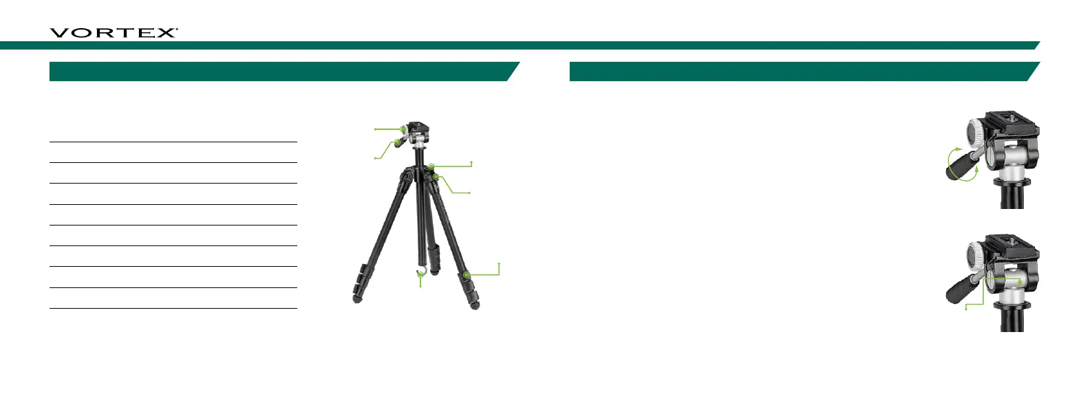 • To unlock the tripod head, twist the handle counter-clockwise until