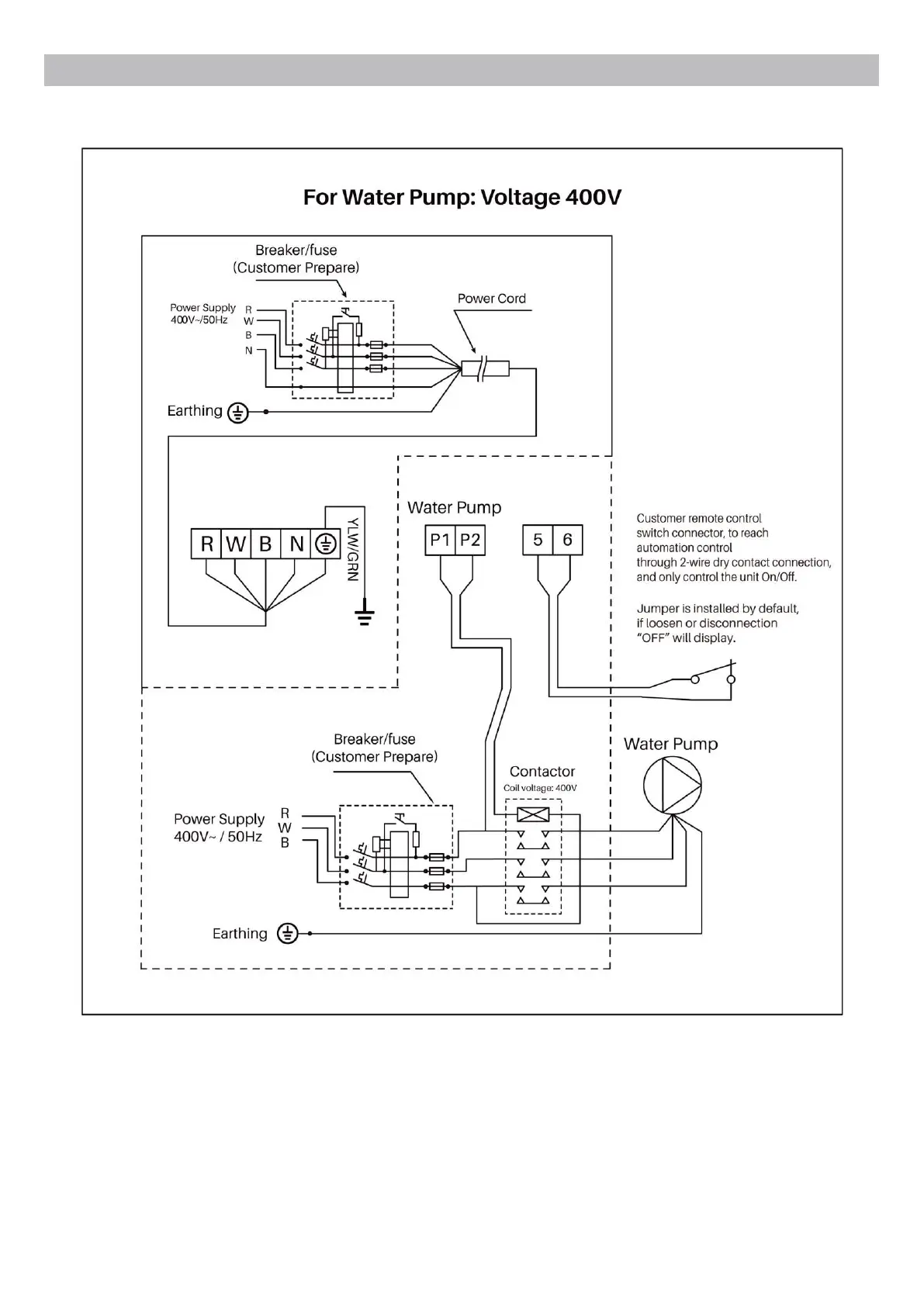 If the user wants to connect the water pump timer, the installer should connect water pump