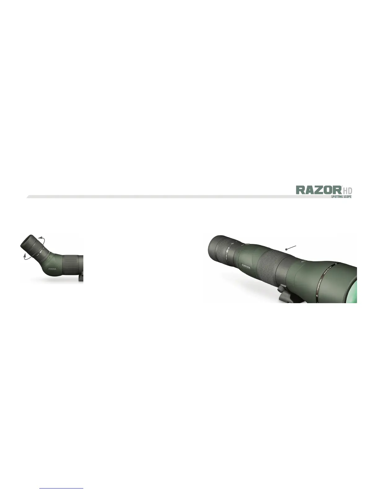 The versatile magnifi cation of the Razor spotting scope allows you to view a wide fi eld