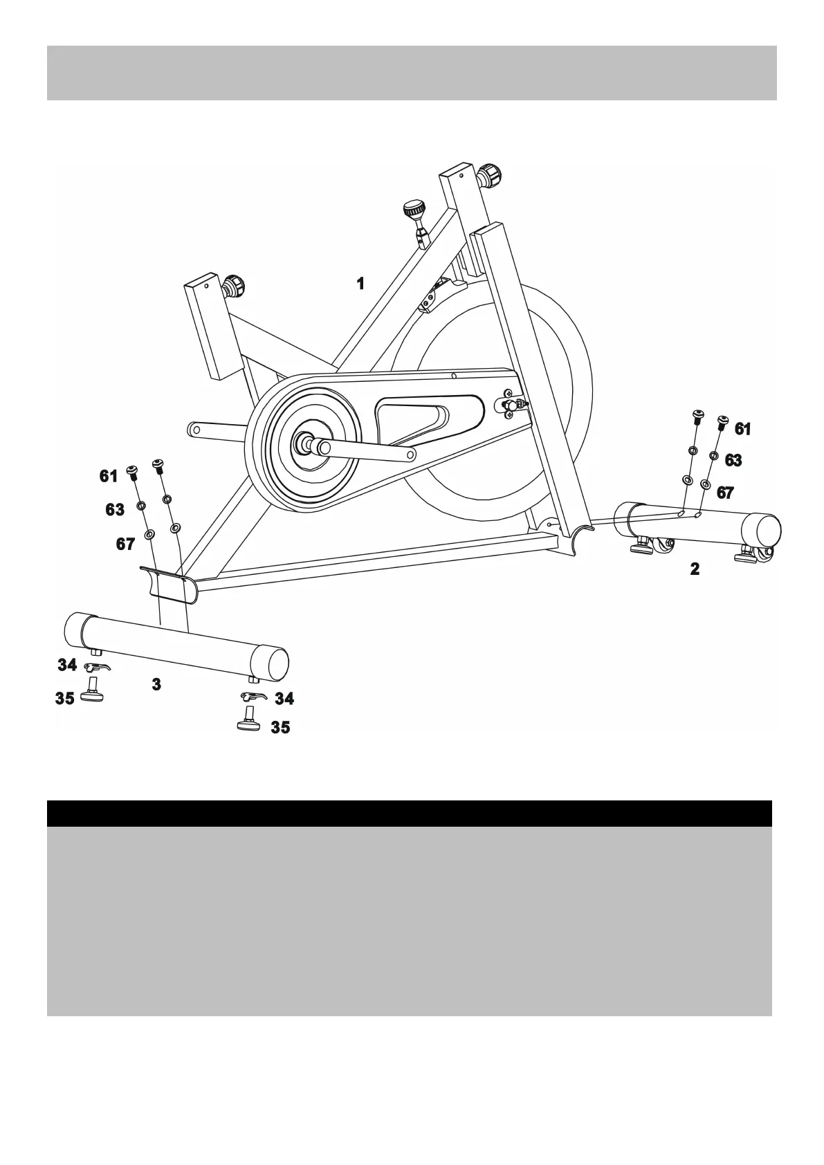 a. Attach Front stabilizer (2) to Main Body (1) using 2 x 20mm Allen bolts (61), 2 x Ø10mm Spring