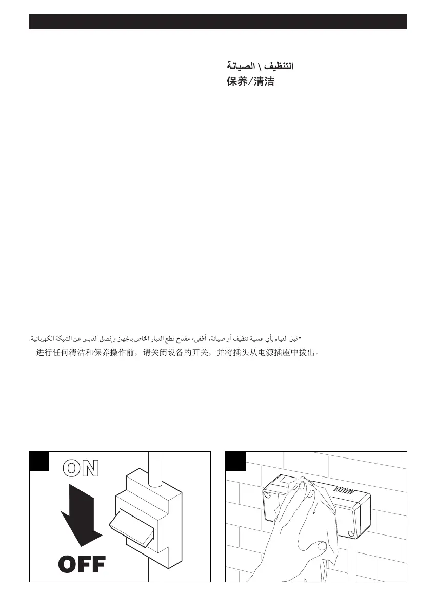 • Vor der Ausführung einer Reinigungs- oder Instandhaltungsarbeit muss der Schalter des Geräts abgeschaltet