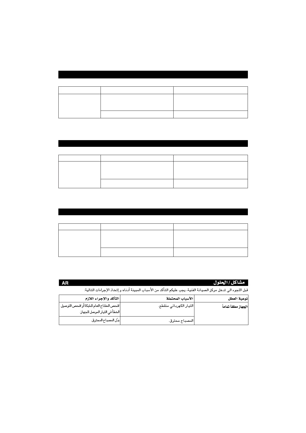 Innan teknisk service tillkallas, försök identifiera orsaken och åtgärda problemet på egen hand med hjälp av listan nedan.