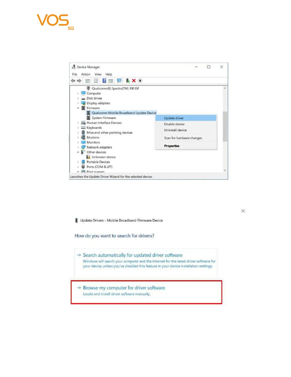 session, right click on the “Qualcomm Mobile Broadband Update Device” and select