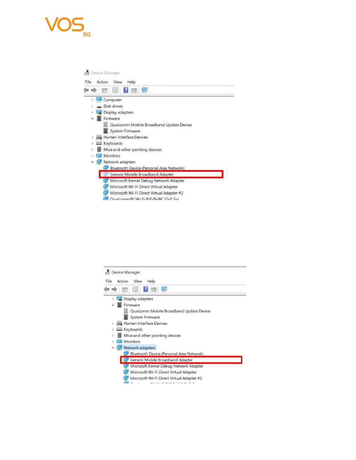 Open Device Manager, click “Network adapters”. Wait for Generic Mobile