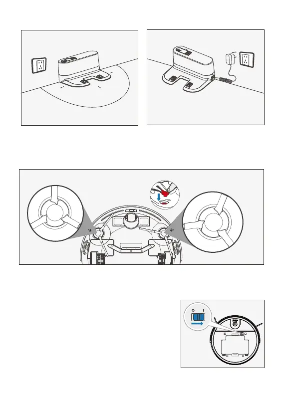 Attach Side Brushes to the bottom of robot by pressing a brush into each slot until