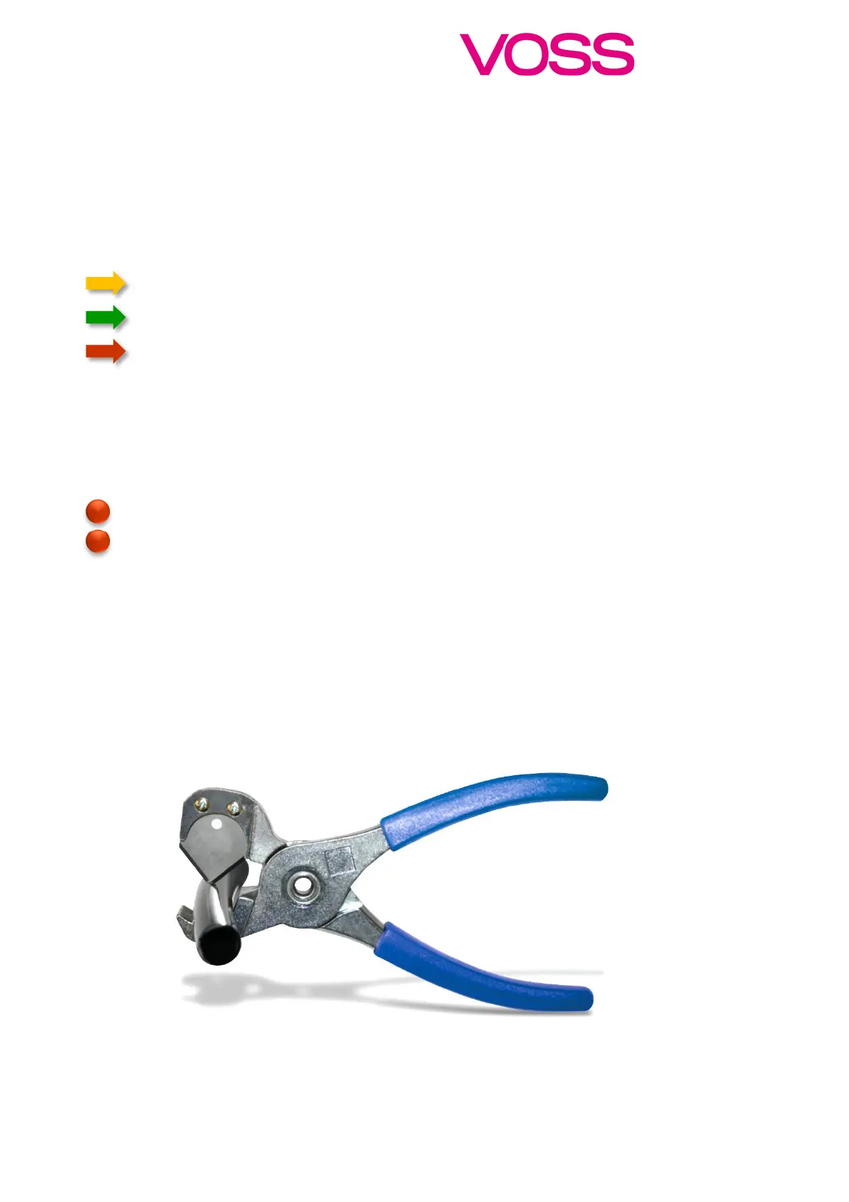 When cutting the nylon tubes to length, we recommend the use of the VOSS cutting pliers (see
