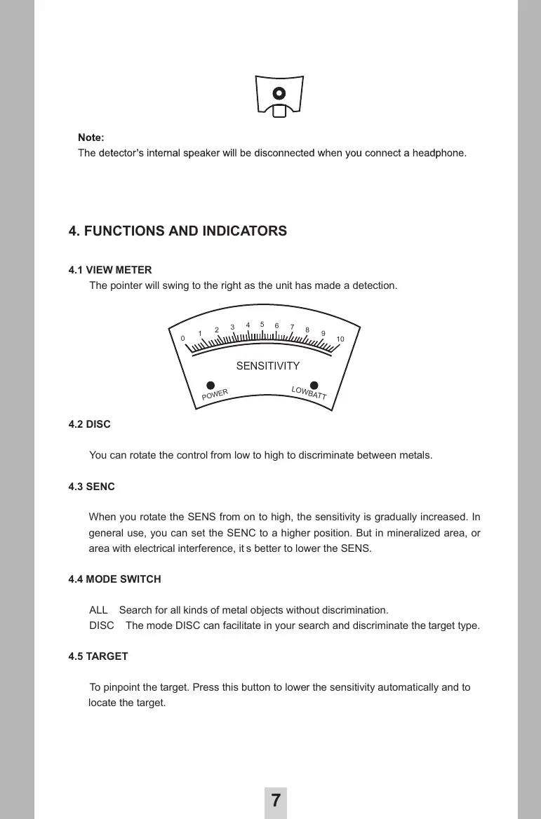 DISC The mode DISC can facilitate in your search and discriminate the target type.