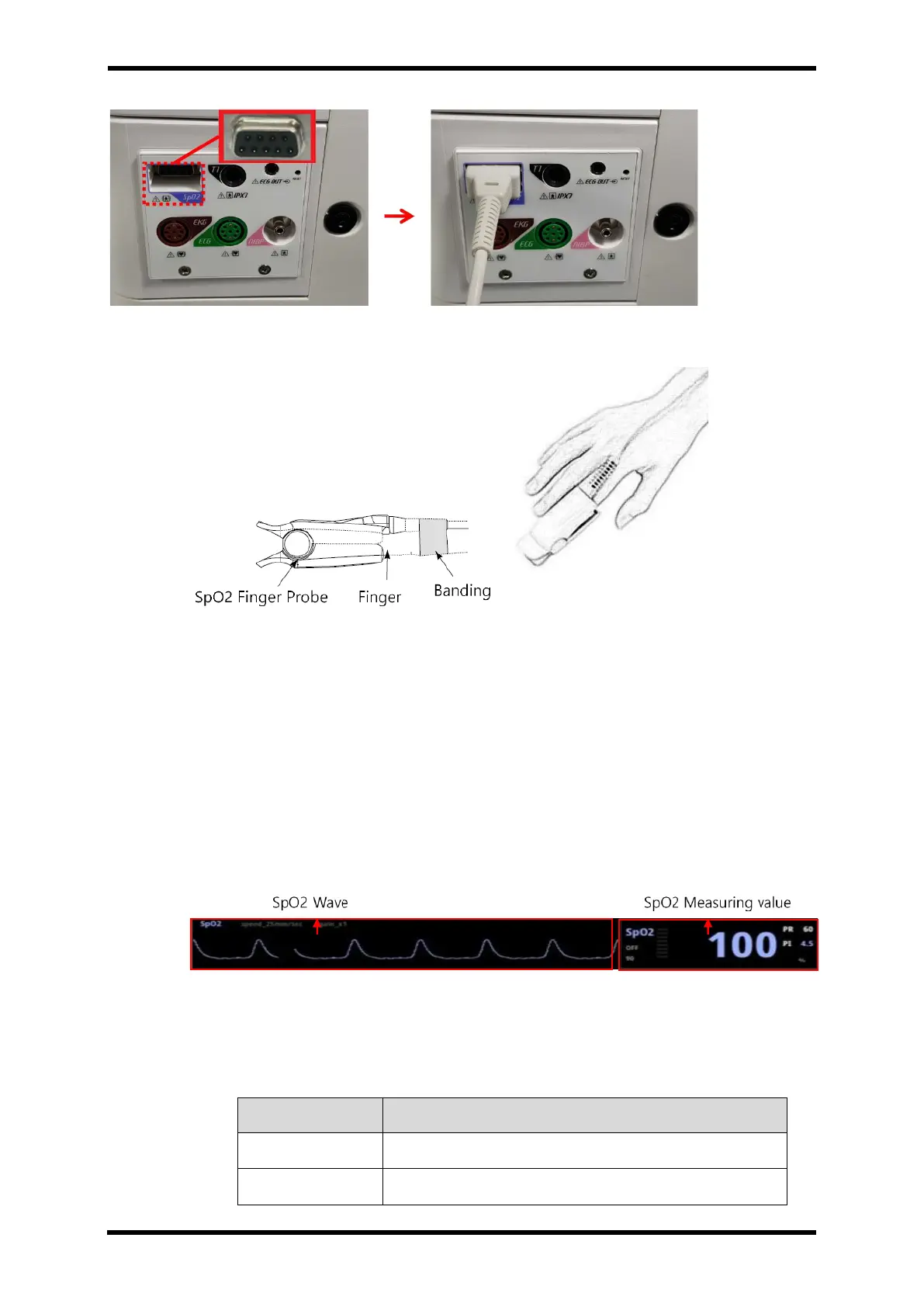 I. Put SpO2 sensor into the finger.