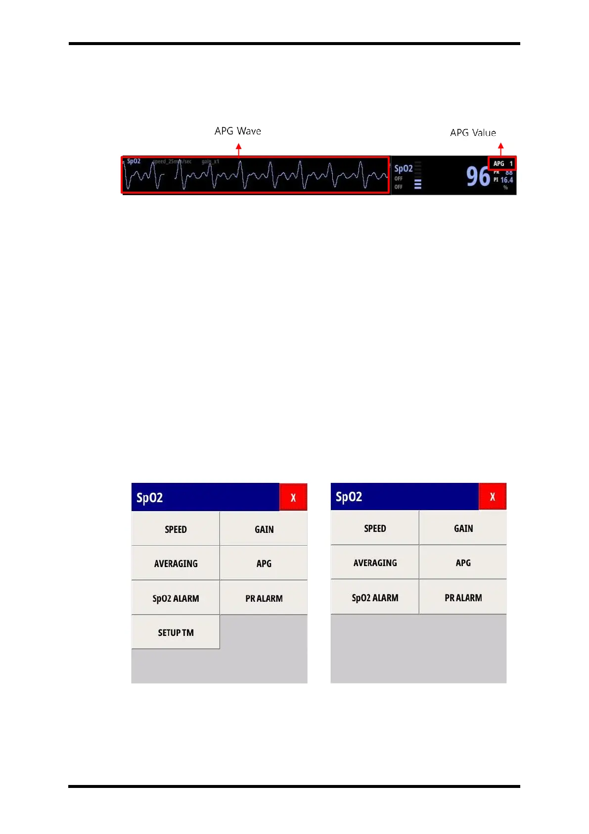 SpO2 APG Measuring Screen.