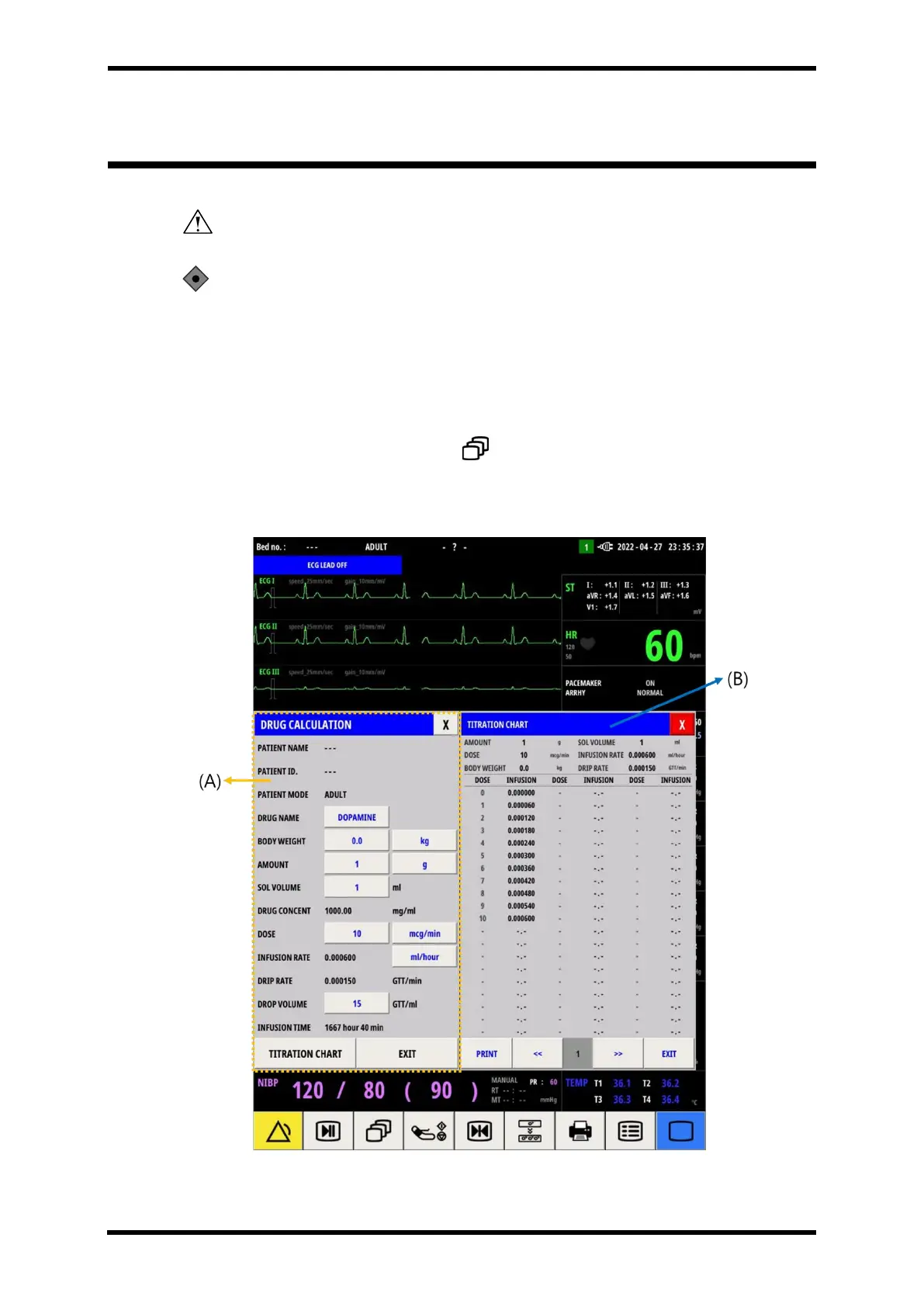 The drug calculation function can help the doctor determine the dosage, rate, etc. of the