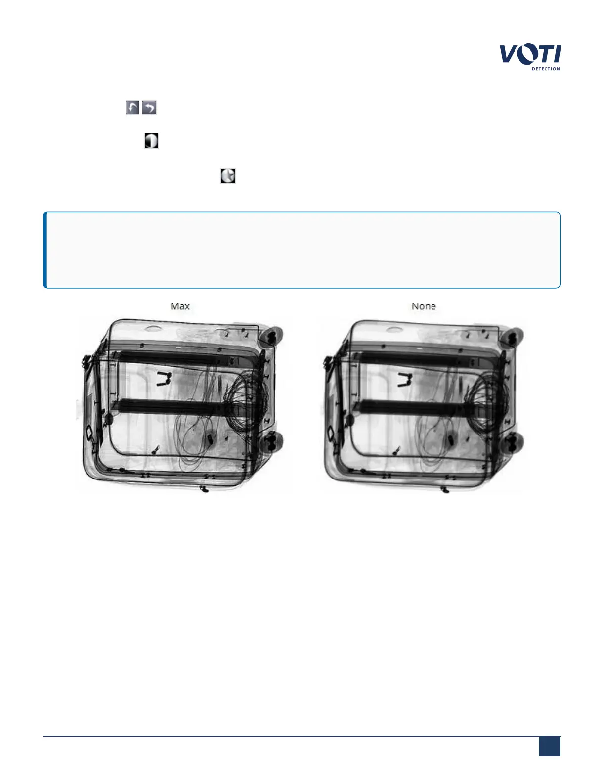 Contrast control adjusts the contrast of the scanned item image. Clicking the control on the dark or light