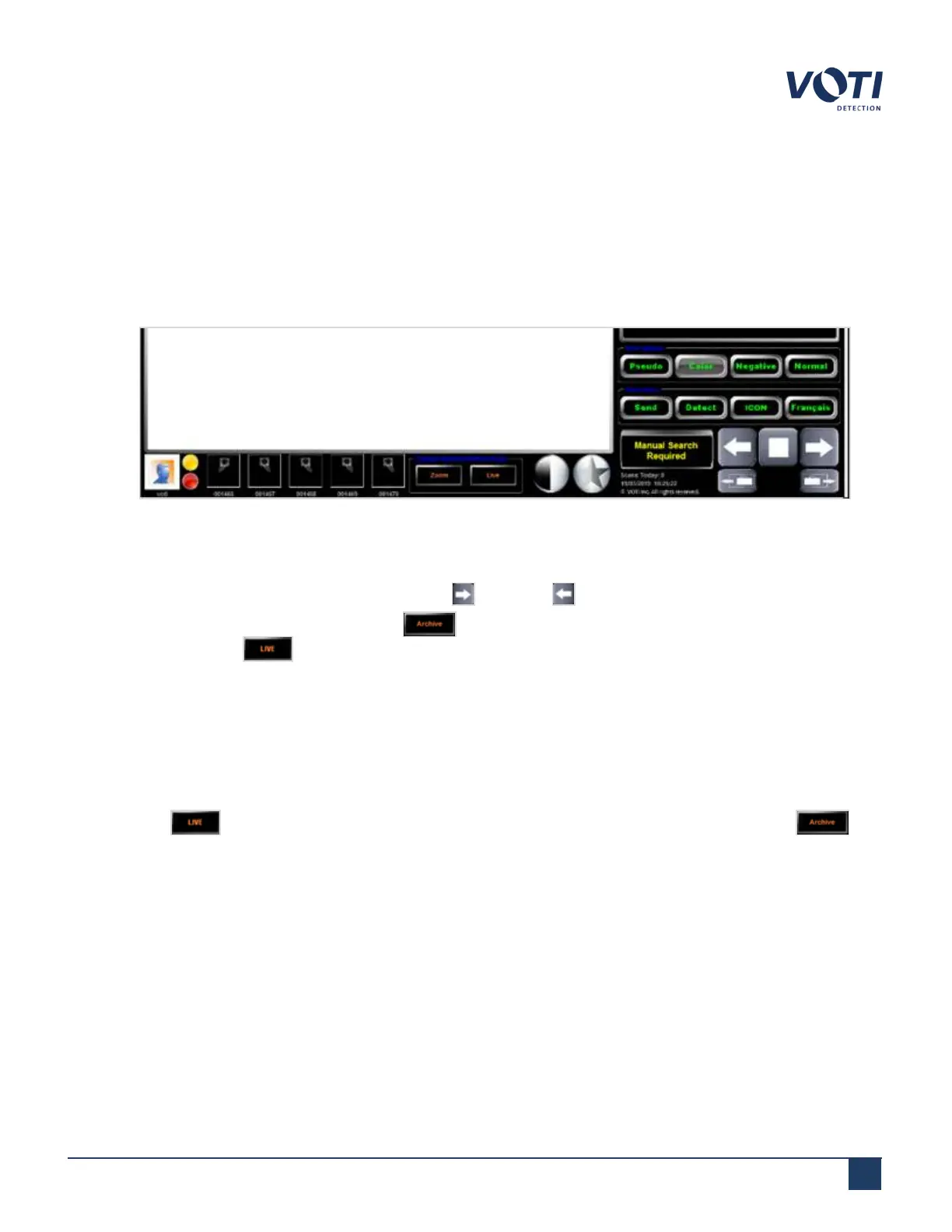 Operators can only access the scanned image archive of their shift. To retrieve and display an archived image: