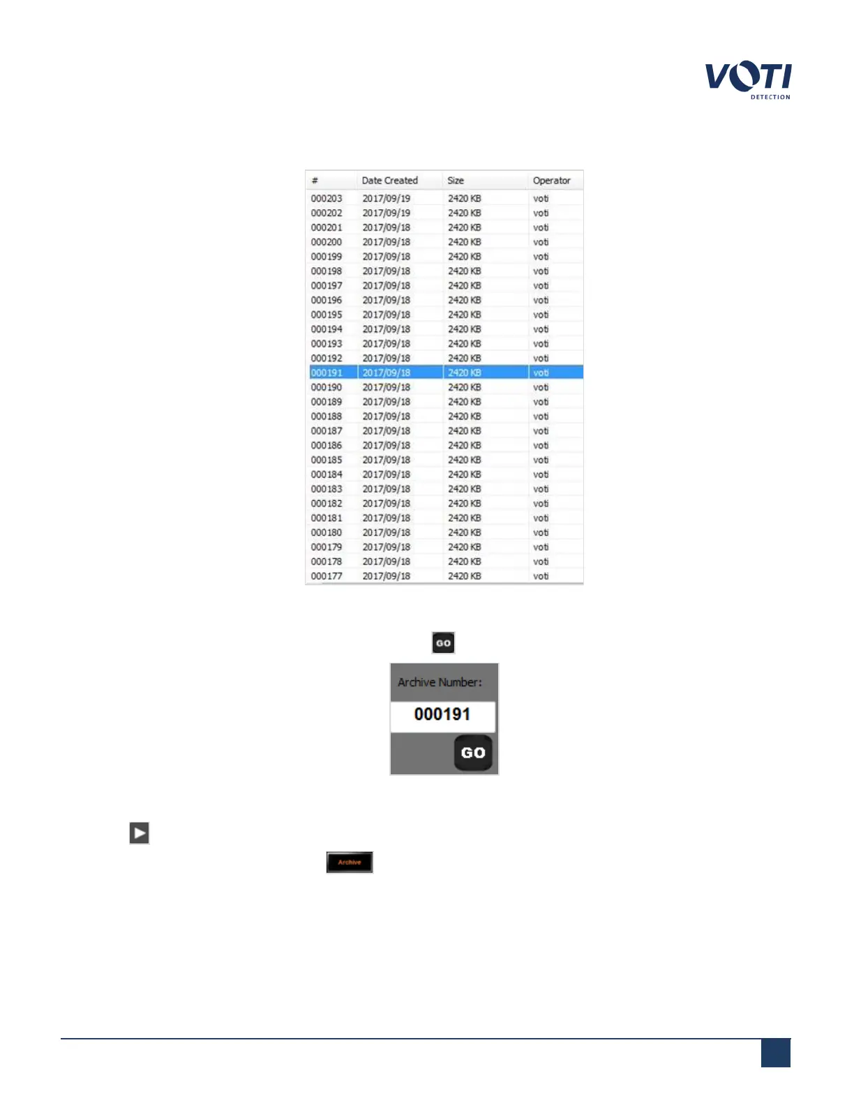 Enter a specific scan number in the text area and click to display information on that archive number.