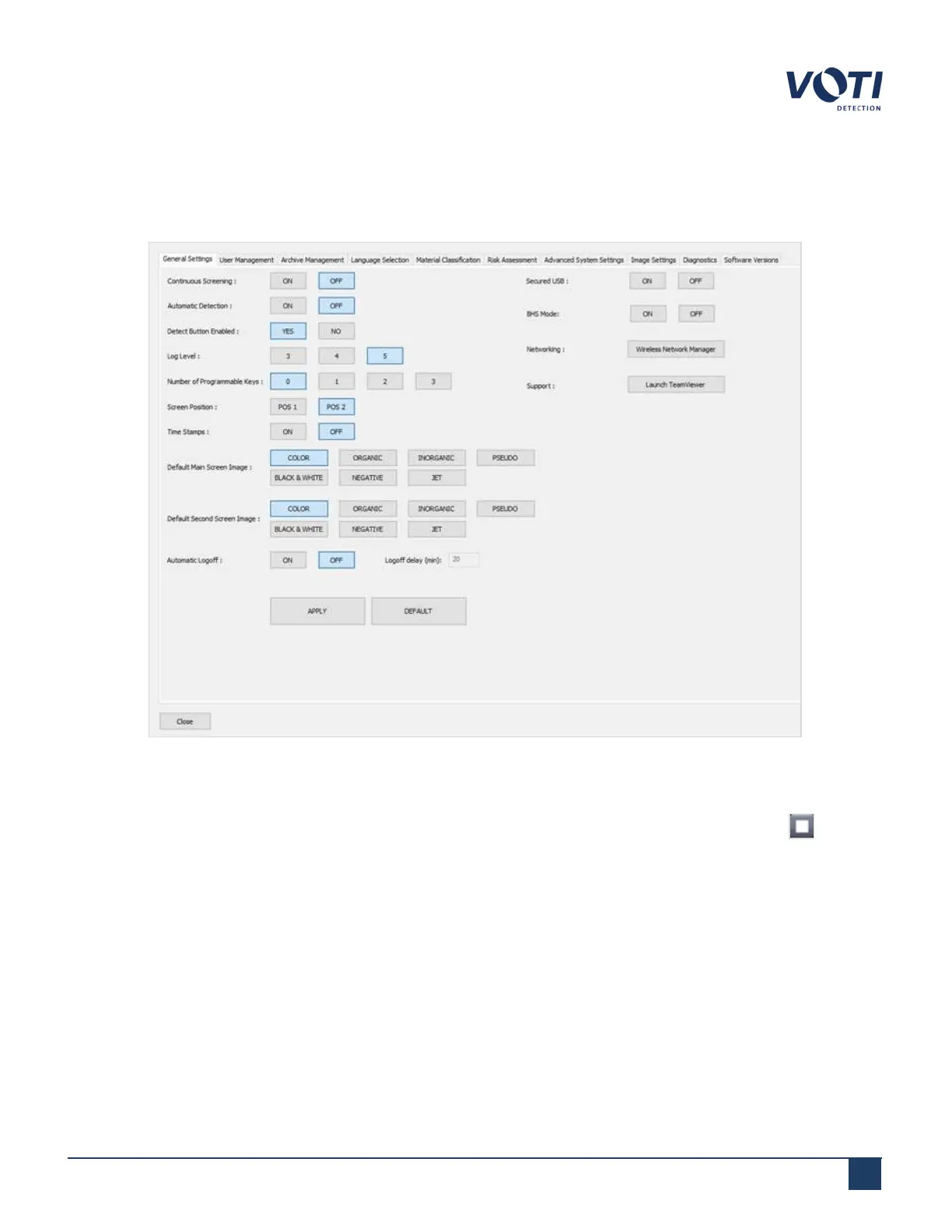 General Settings sets the default state of the scanner for an operator.