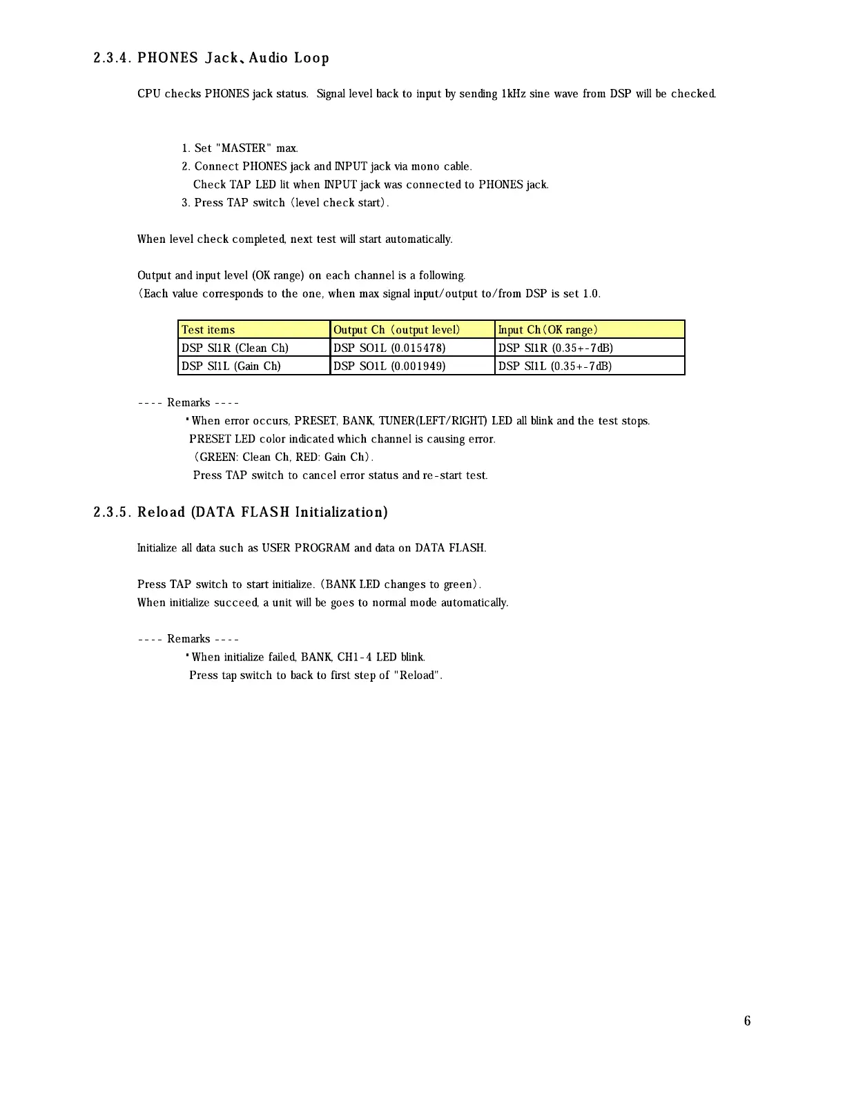 VOX Amplification VT40+ - PHONES Jack and Audio Loop Testing; Data Initialization and Reload