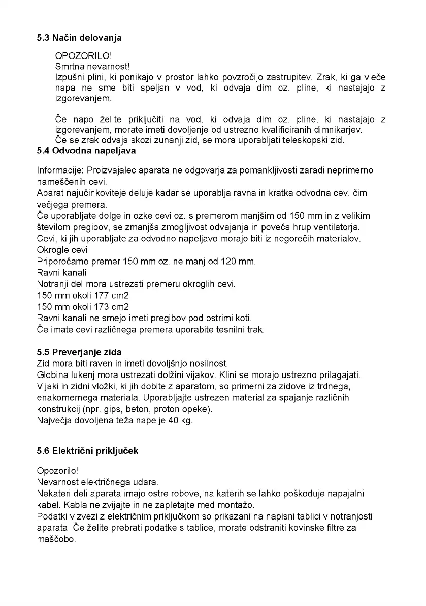 Največja dovoljena teža nape je 40 kg.