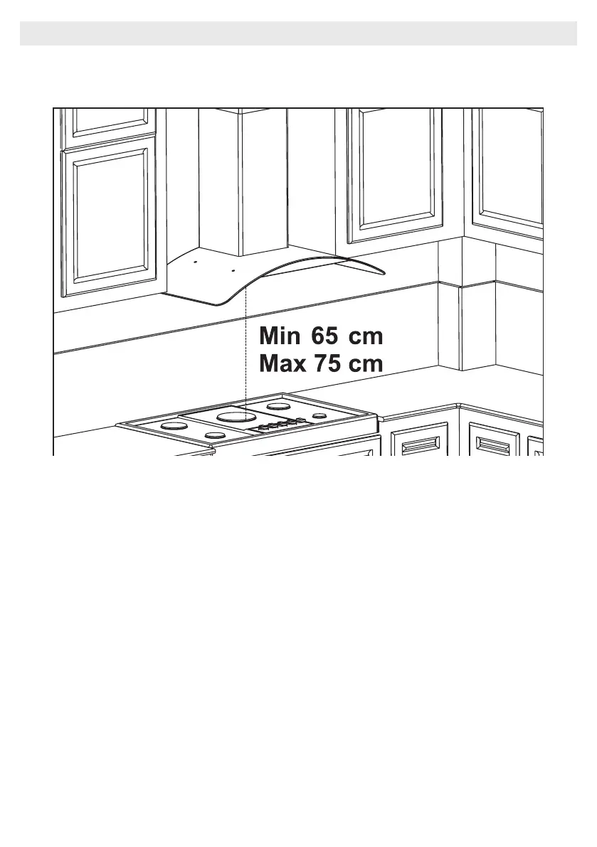 montira napa, mora da postoji najmanje 650 mm razdaljine između proizvoda i bilo koje