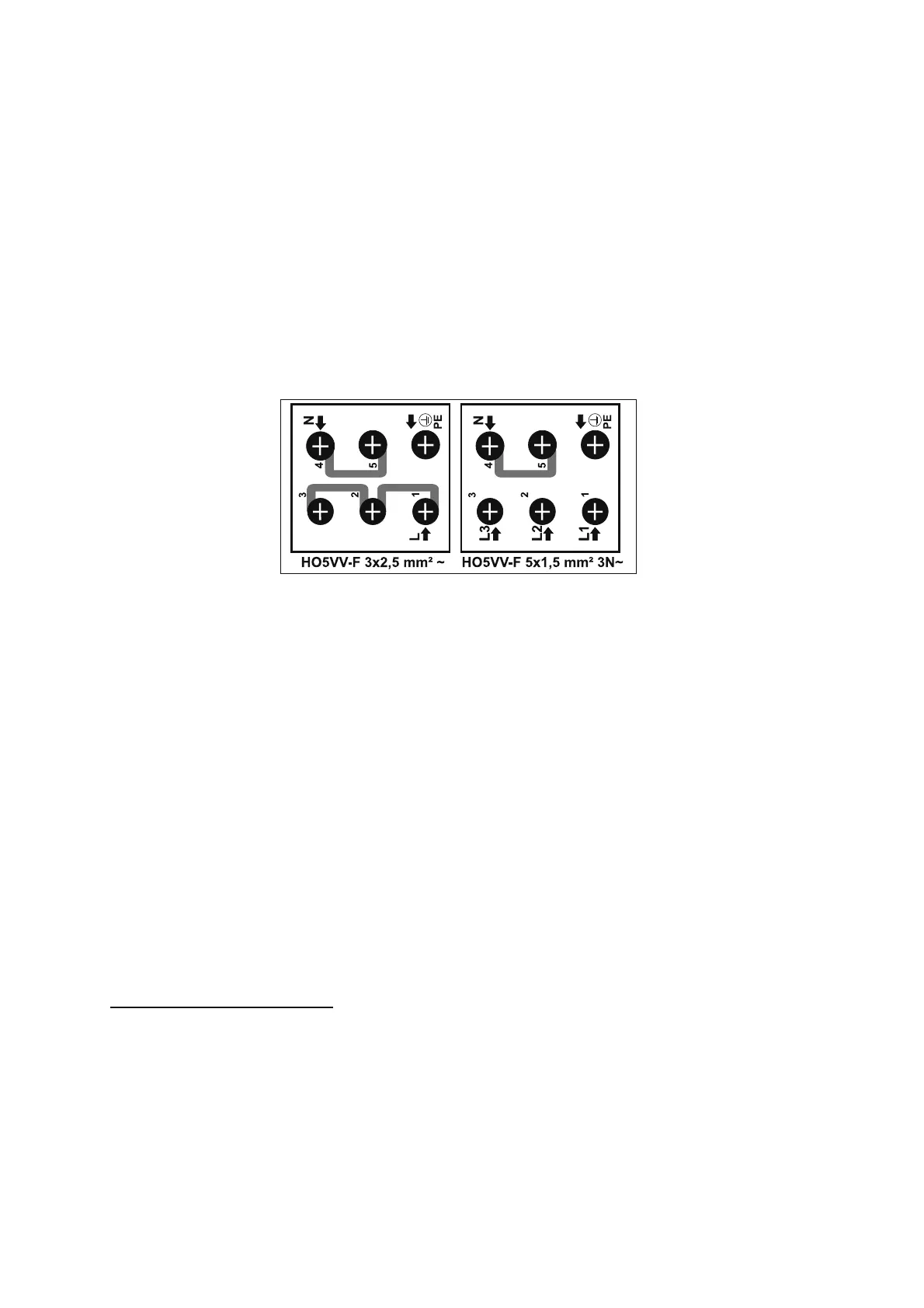 x Za to povezavo je potrebno uporabiti elektrino žico tipa H05V V-F
