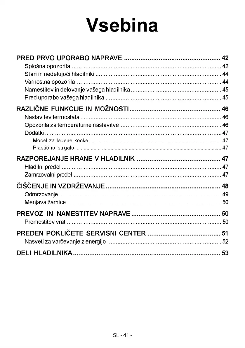 Namestitev in delovanje vasega hladilnika..............................................................45