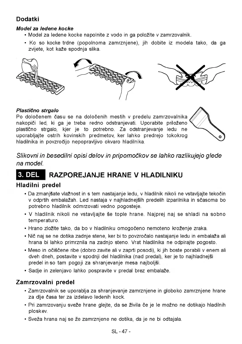 • Zamrzovalnik se uporablja za shranjevanje zamrznjene in globoko zamrznjene hrane