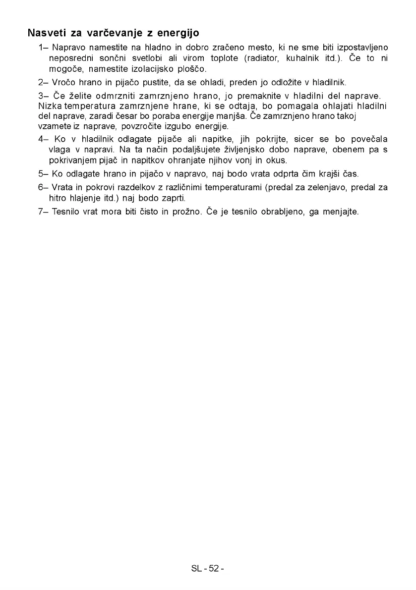 5- Ko odlagate hrano in pijaco v napravo, naj bodo vrata odprta cim krajsi cas.