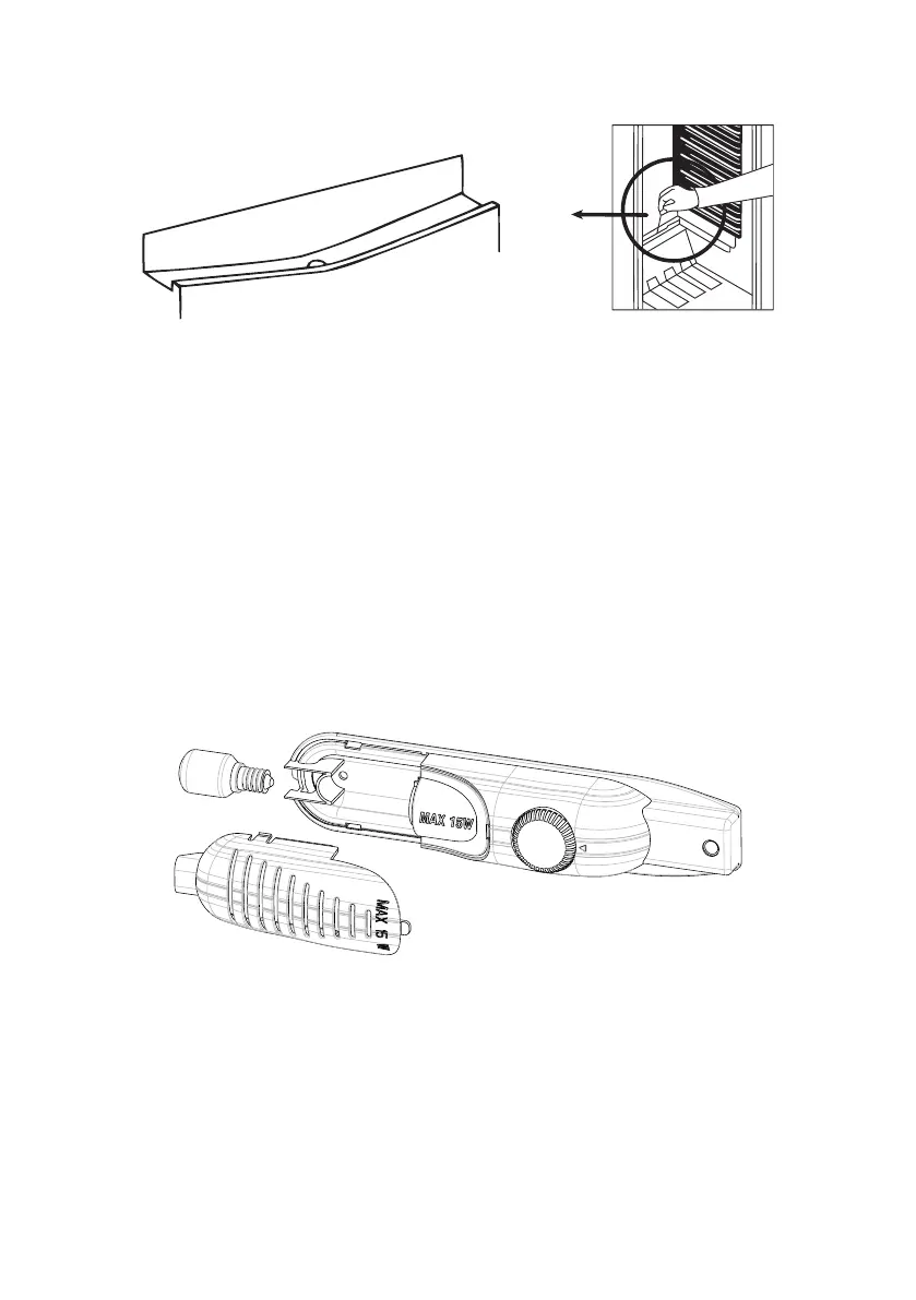 Isključite frižider iz strujne mreže, pritisnite zakačke sa strana poklopca lampice i uklonite ga,