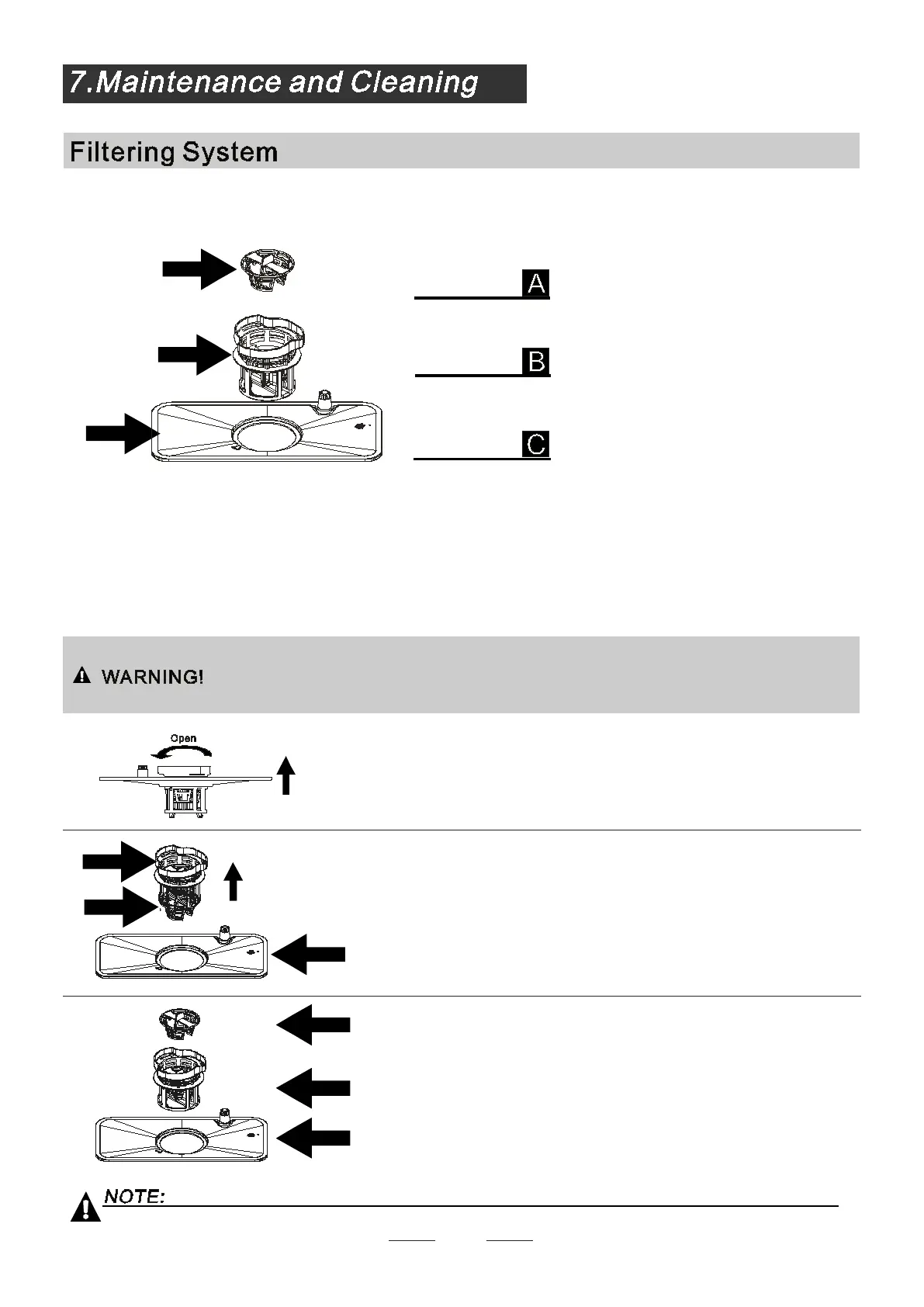 Step1 contrarotate the filter assembly(A,B and C),