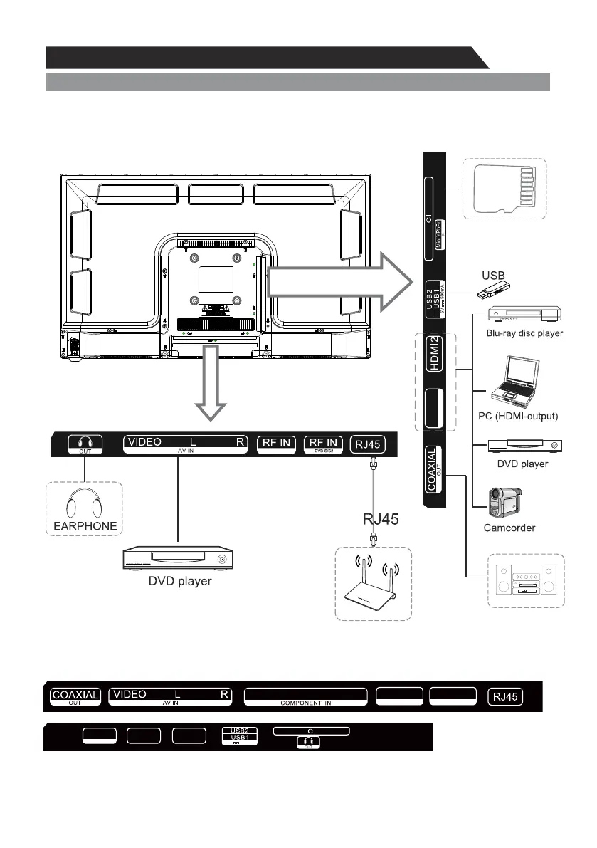 You can connect the TV with video devices such as DVD/VCD player, VCR and video camera to