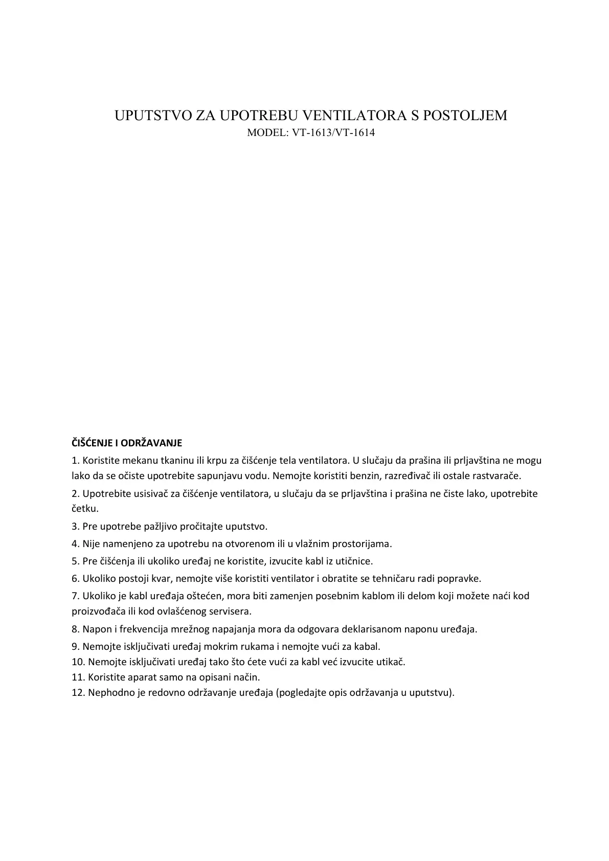 UPUTSTVO ZA UPOTREBU VENTILATORA S POSTOLJEM
