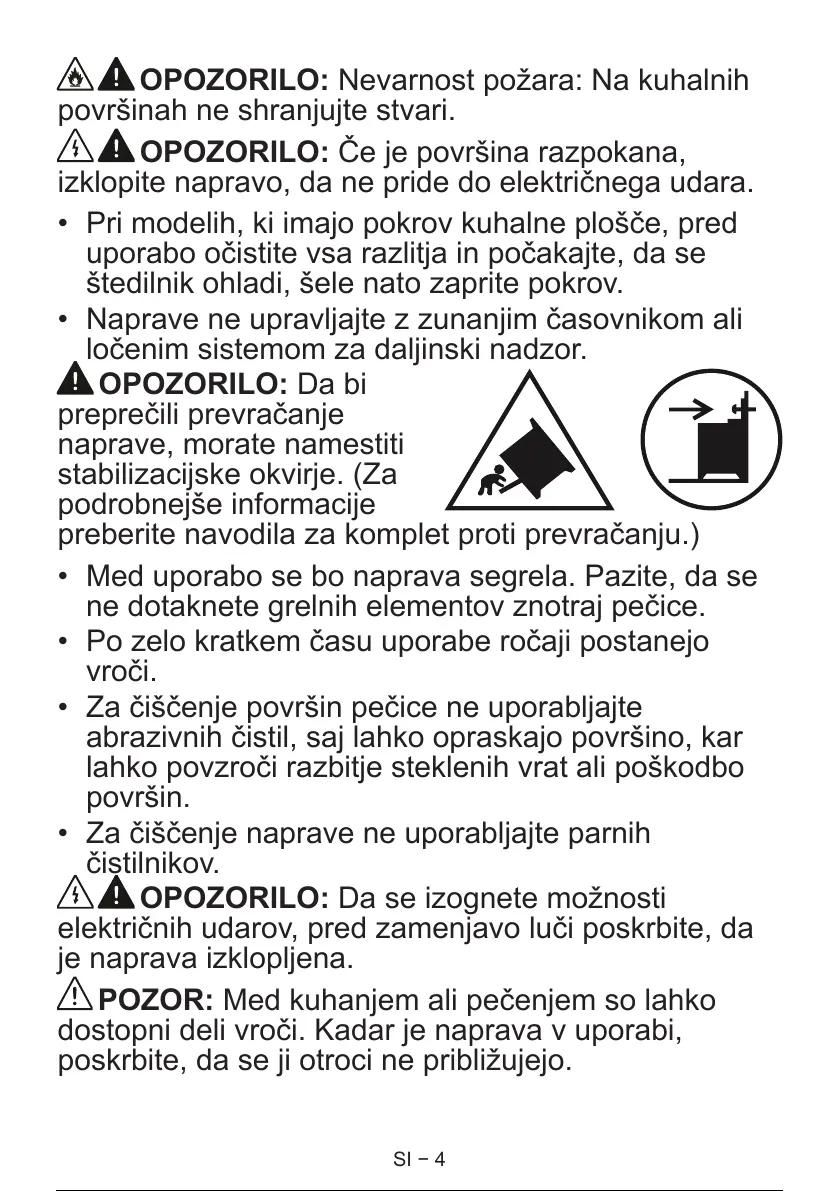OPOZORILO: Nevarnost požara: Na kuhalnih