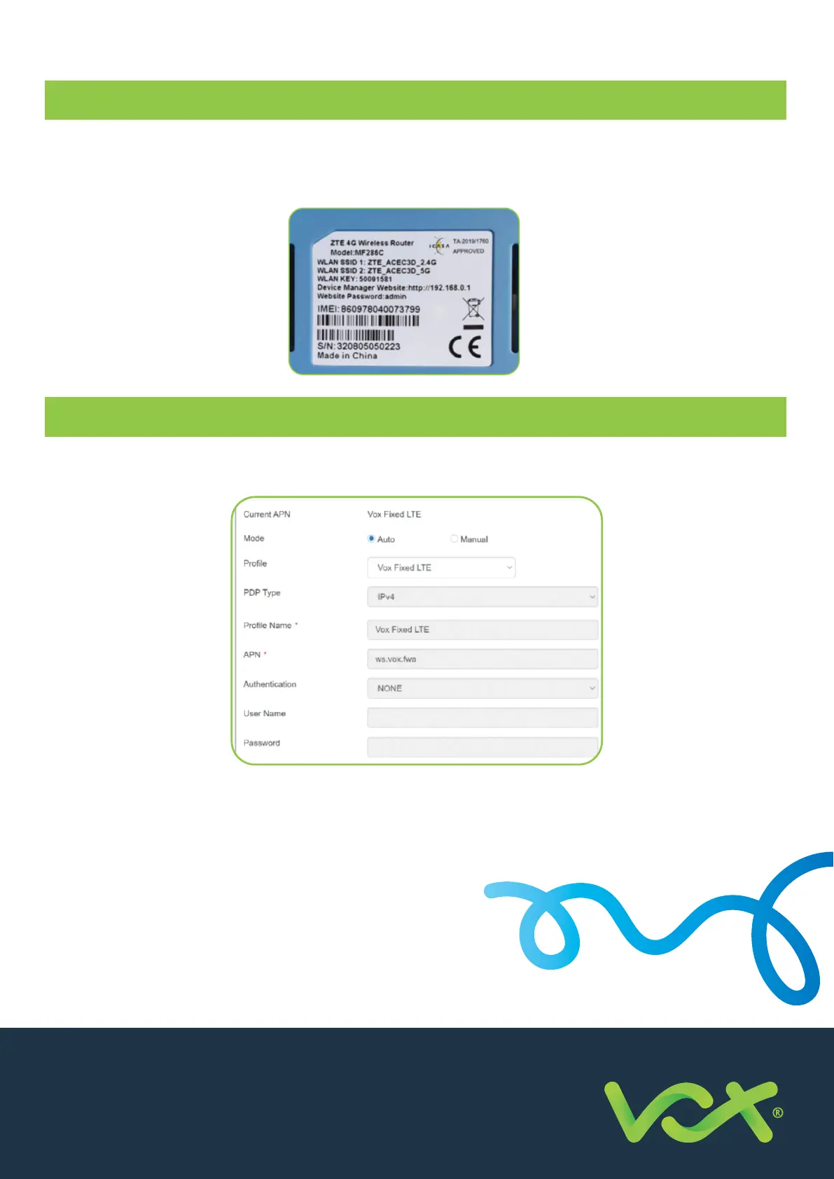 If you already own an MTN-approved router, you will need to create a new APN pro le with the Vox APN settings,