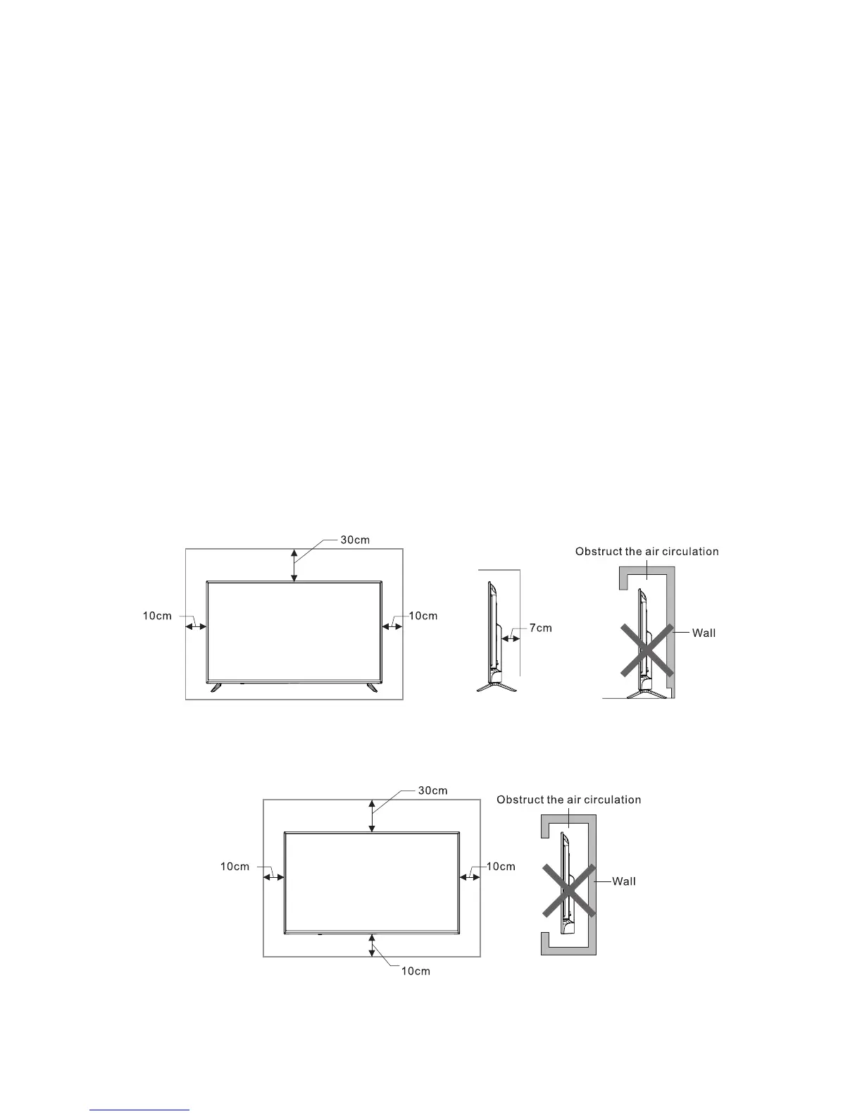 • Do not put the device in limited space, e.g. bookcase or embedded closet, unless the TV set is