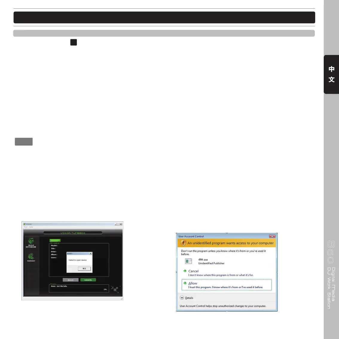 在 Windows Vista作業系統下,會造成出現 “Failed to open device”(打開設備失敗)的錯誤訊息。