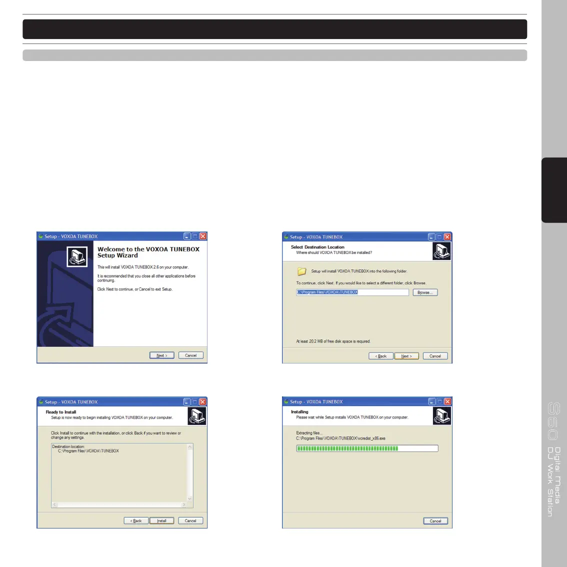 Installation : Refer to the following figures for installing VOXOA TUNEBOX on your computer.