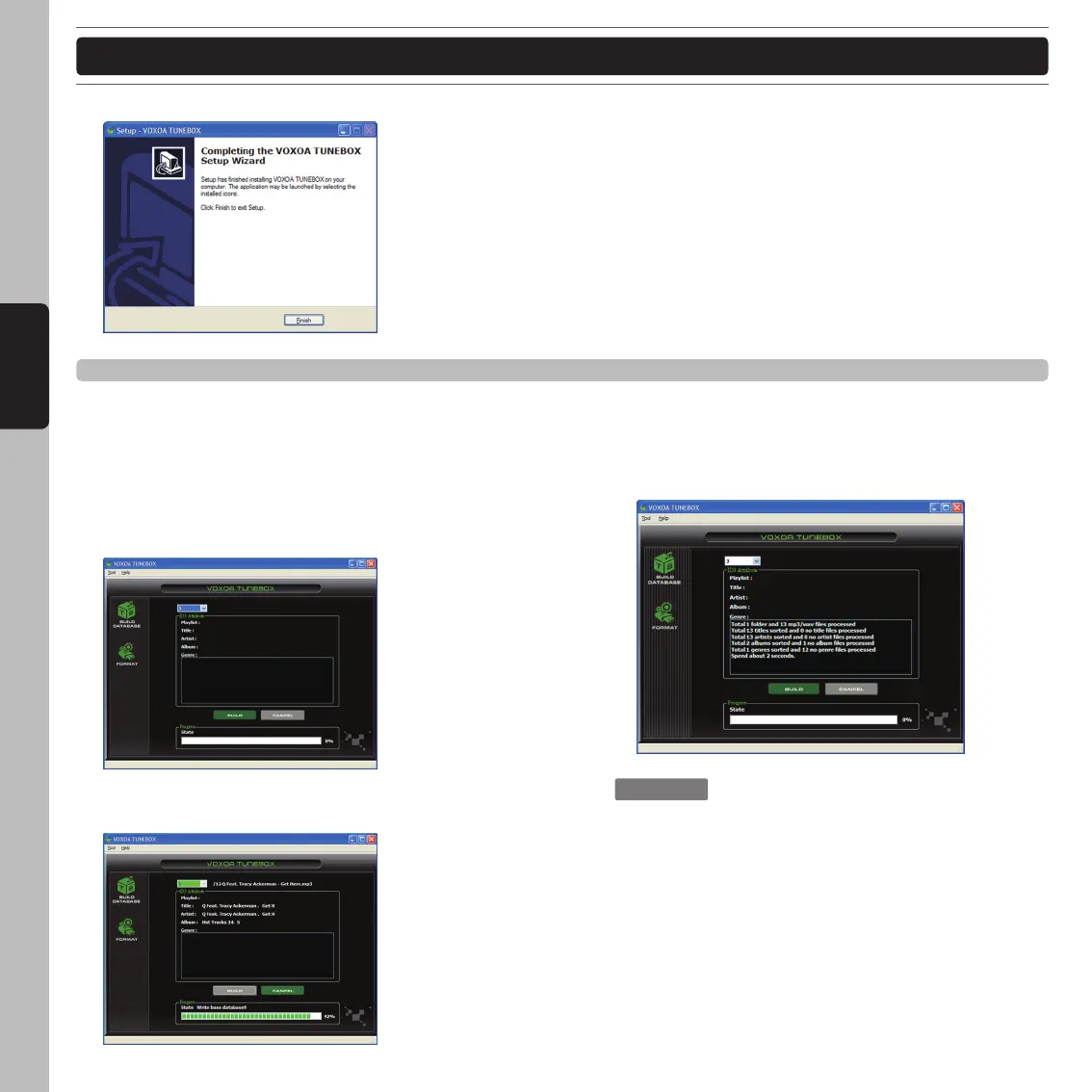 The VOXOA TUNEBOX can scan all of music files in your USB hard driver and then create database files to locate