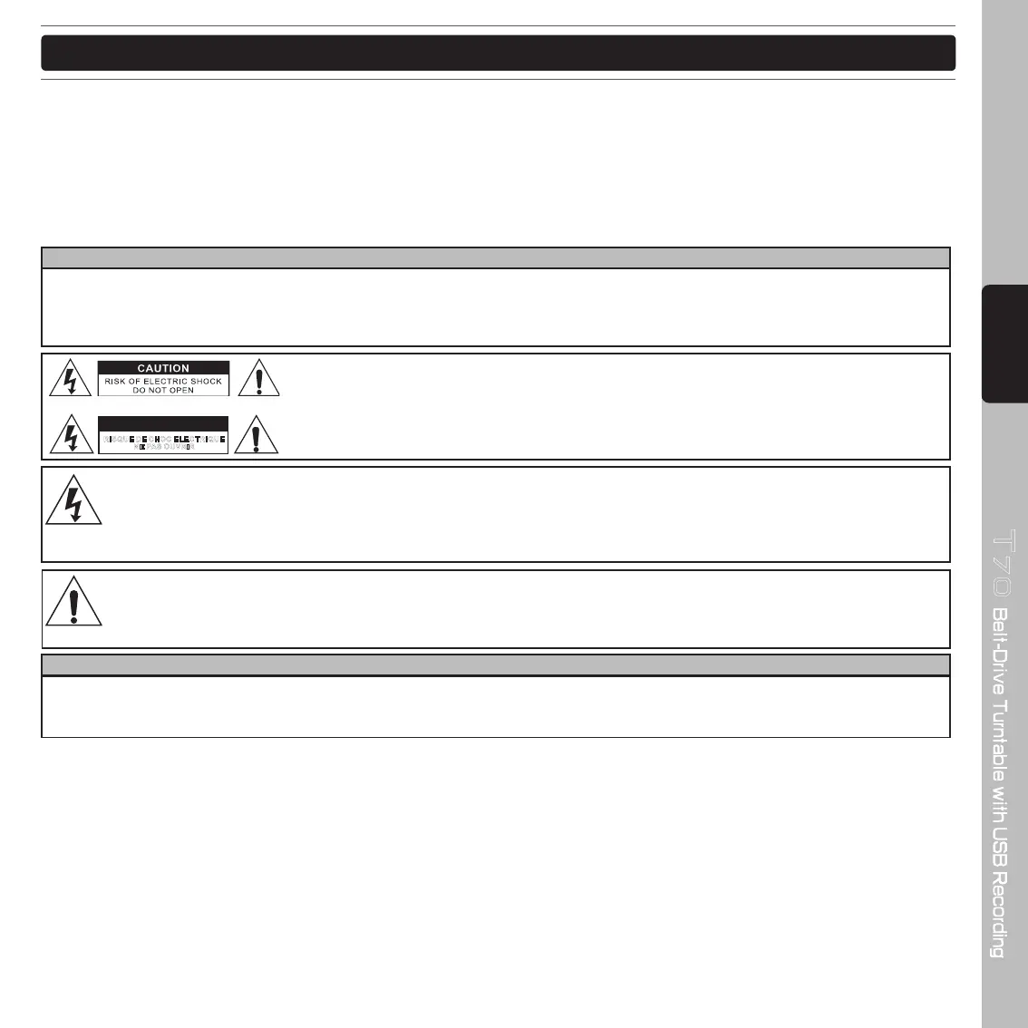 CAUTION : To reduce the risk of electric shock, do not remove any cover. No user-serviceable