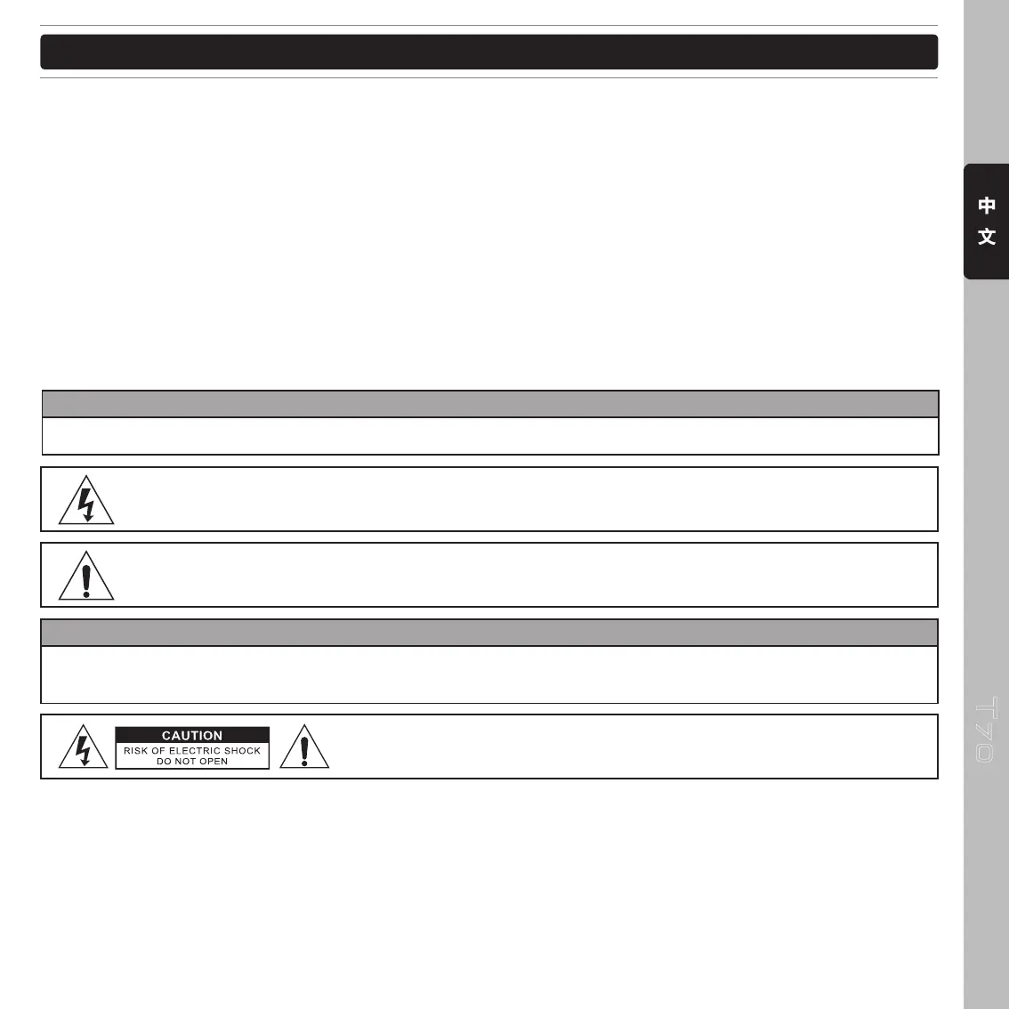 注意:嚴禁打開機蓋以降低觸電的風險。維修及更換零件請諮詢維修中心