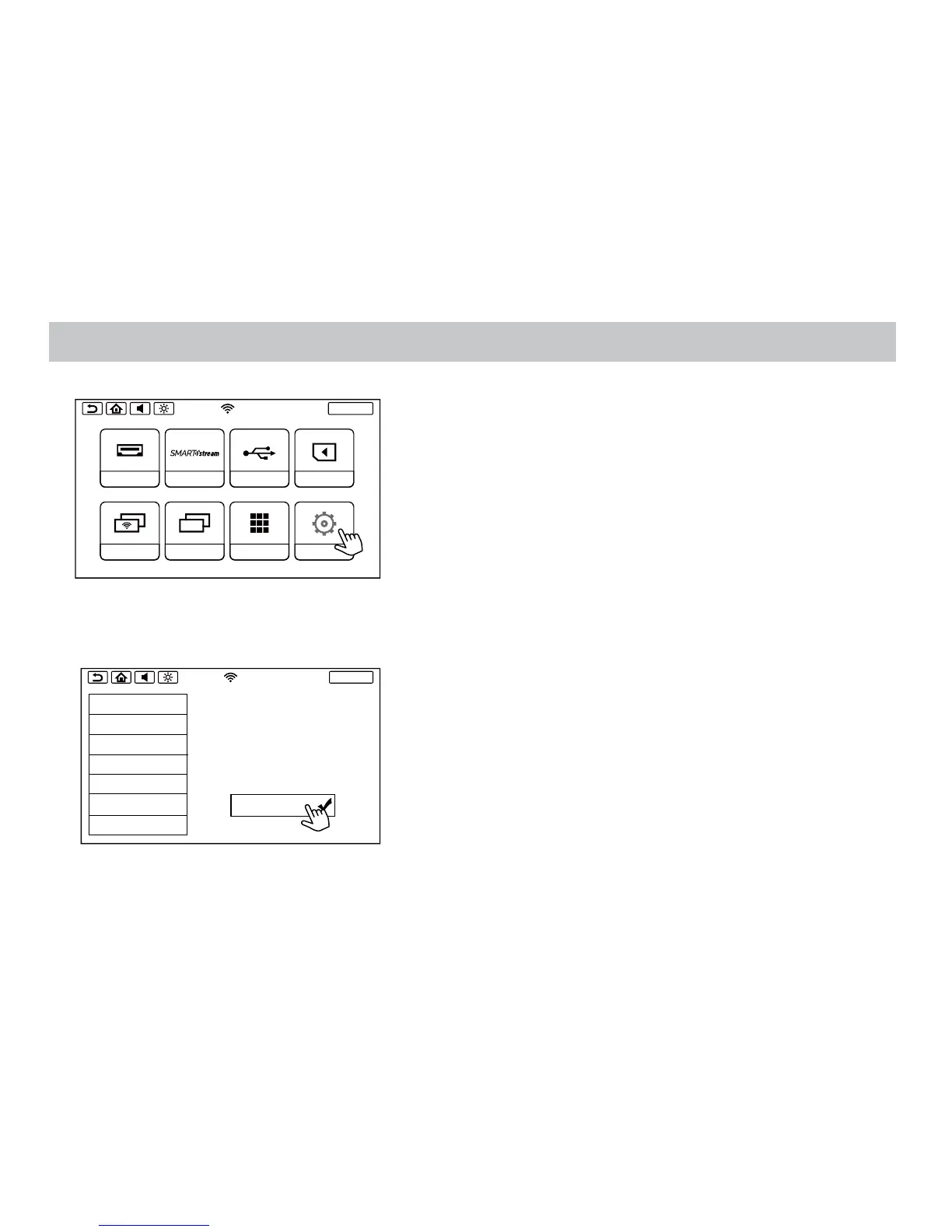 2. Select RESET inside the SETUP screen, Touch the Factory Setting