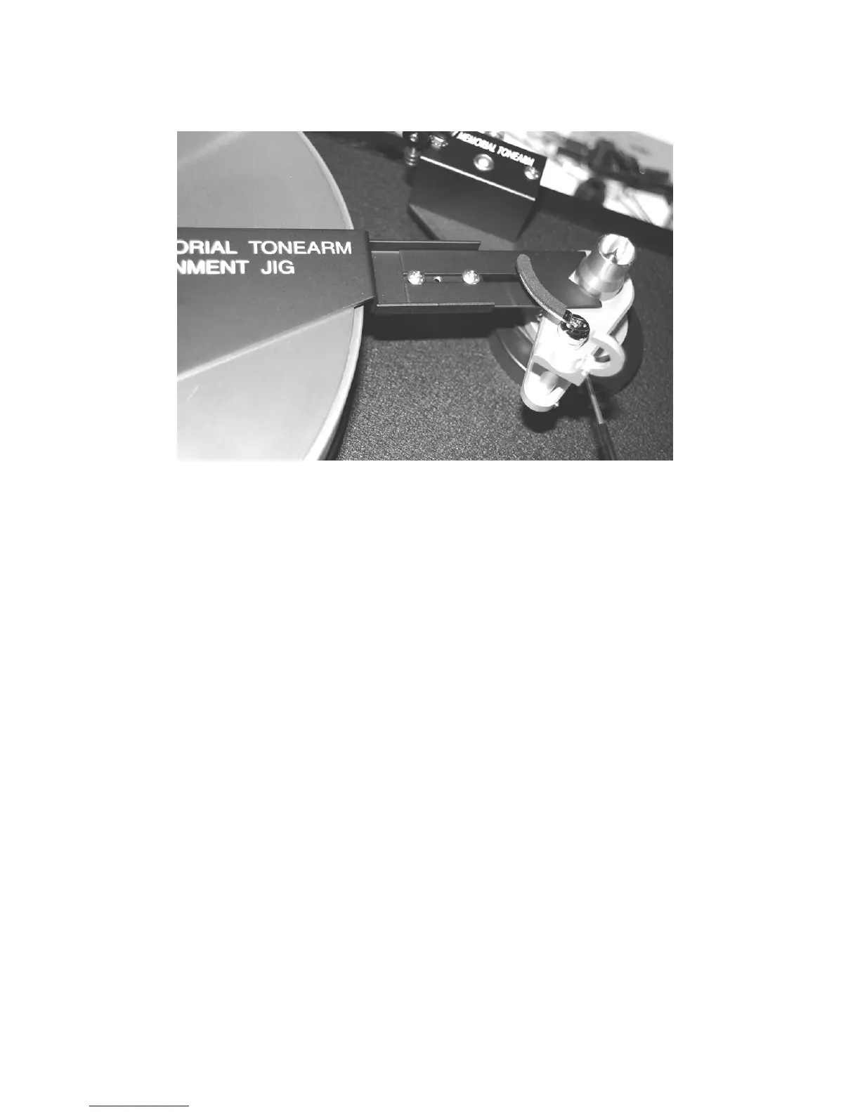 Carefully swing the arm over the grid at the far end of the jig and place the stylus as