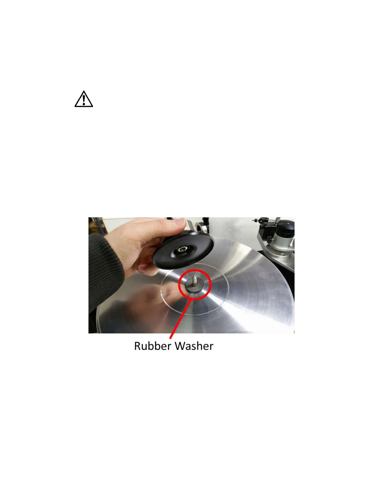 • Place the black washer on the platter, then the record, then the record clamp. Always turn off