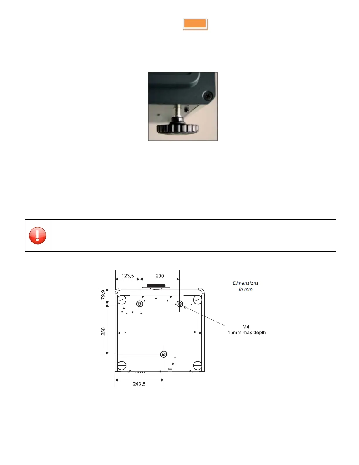 requires it. Three M4 mounting holes with a 0.7 mm pitch are provided under the projector to allow bolting to a ceiling