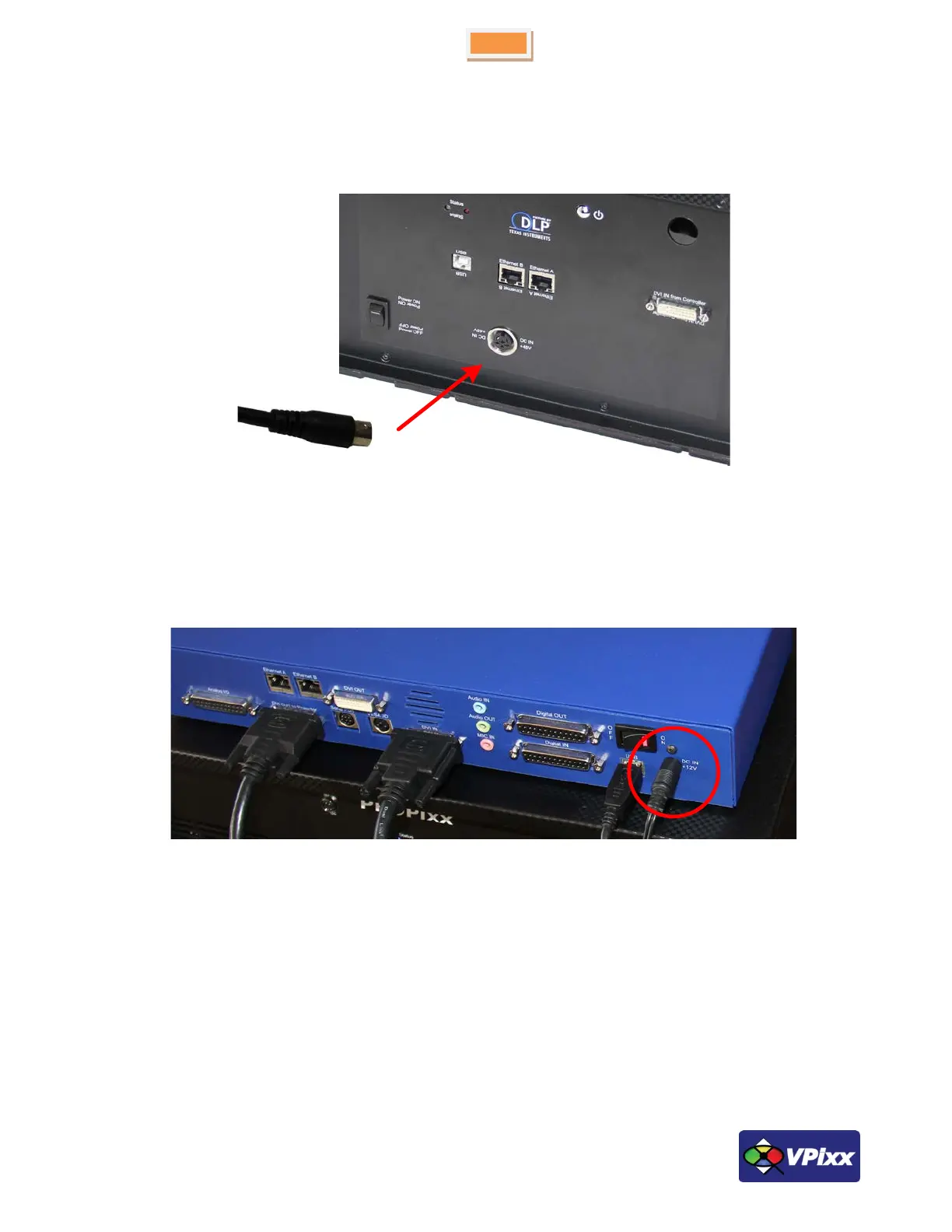 VPixx Technologies PROPixx Full - Figure 14 Ac Adaptor Connected to Projectors DC-In Connector; Figure 15 Ac Adaptor Connected to Controllers DC-In Connector