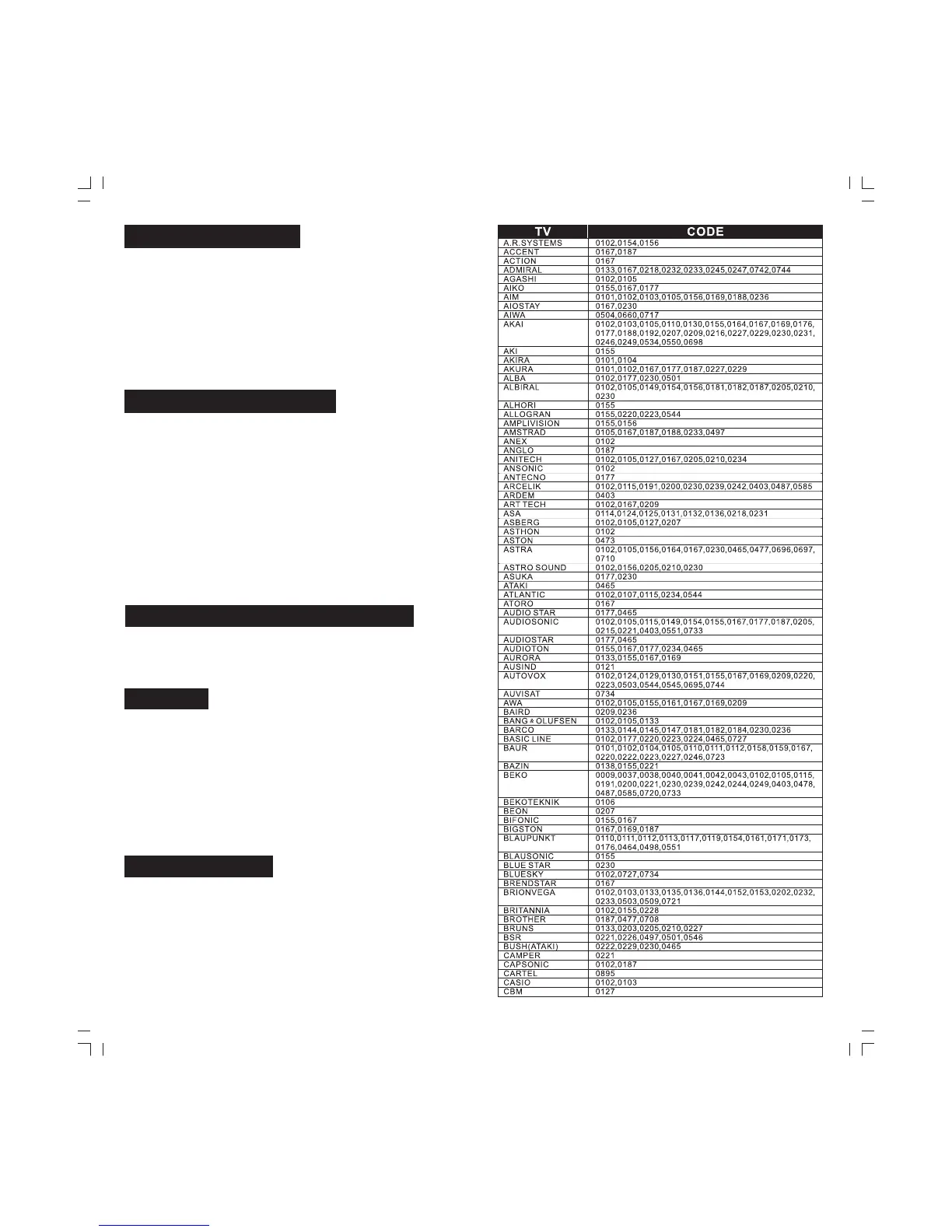 umschalten oder den Code der Fernbedienung eingeben, bis der